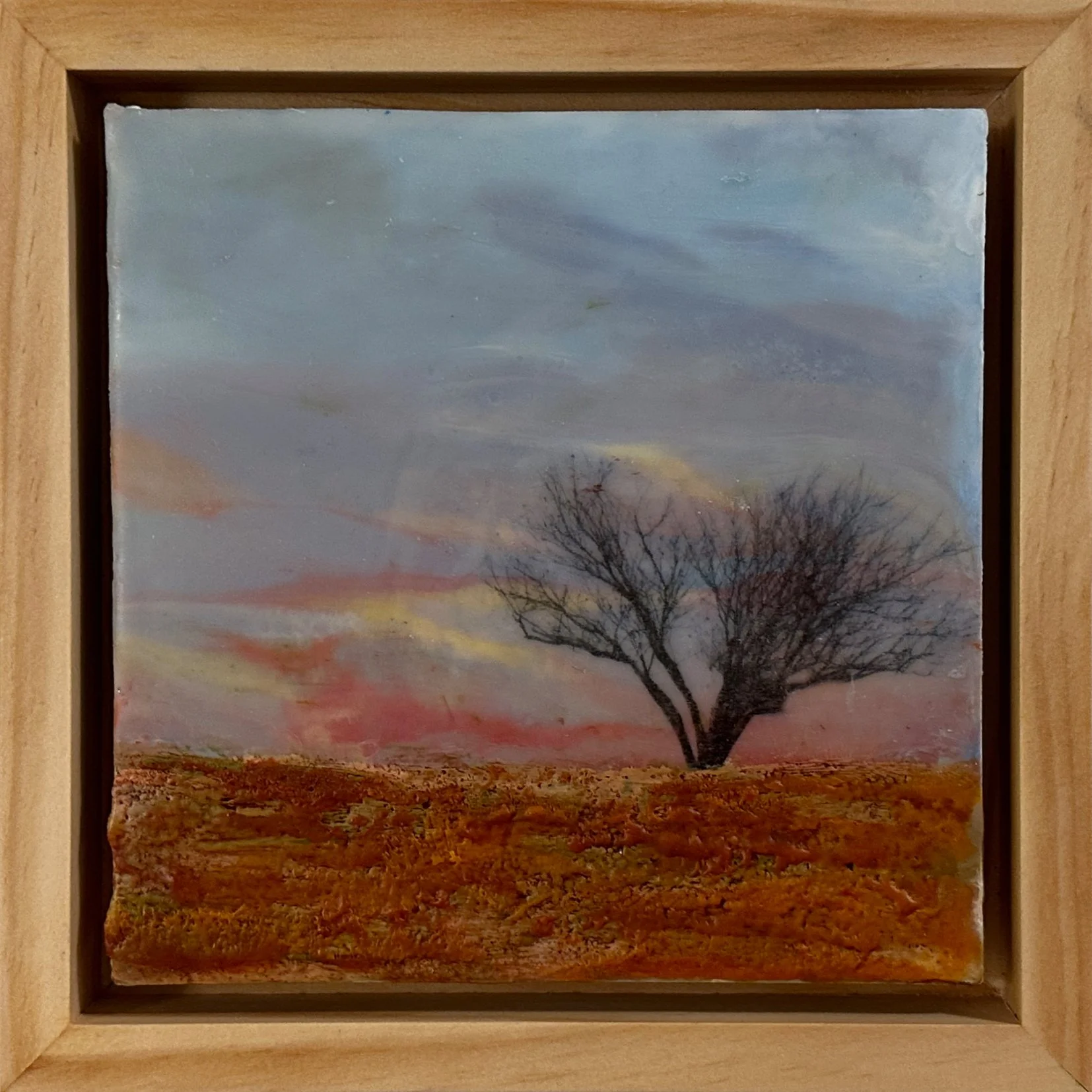 There is that beautiful time of day when the sun is going down and the color of the sky is magnificent. It changes the way everything looks. This painting captures that feeling for me.