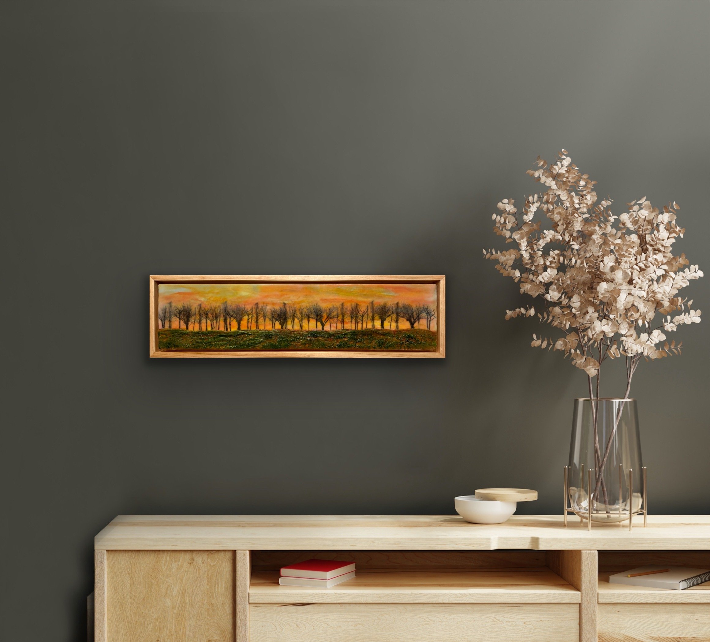 There’s nothing like looking across a field at sunset to see a line of trees in the distance. The photos of trees were taken at the end of winter, just before the buds of spring began to appear. It was my last winter painting of 2023.