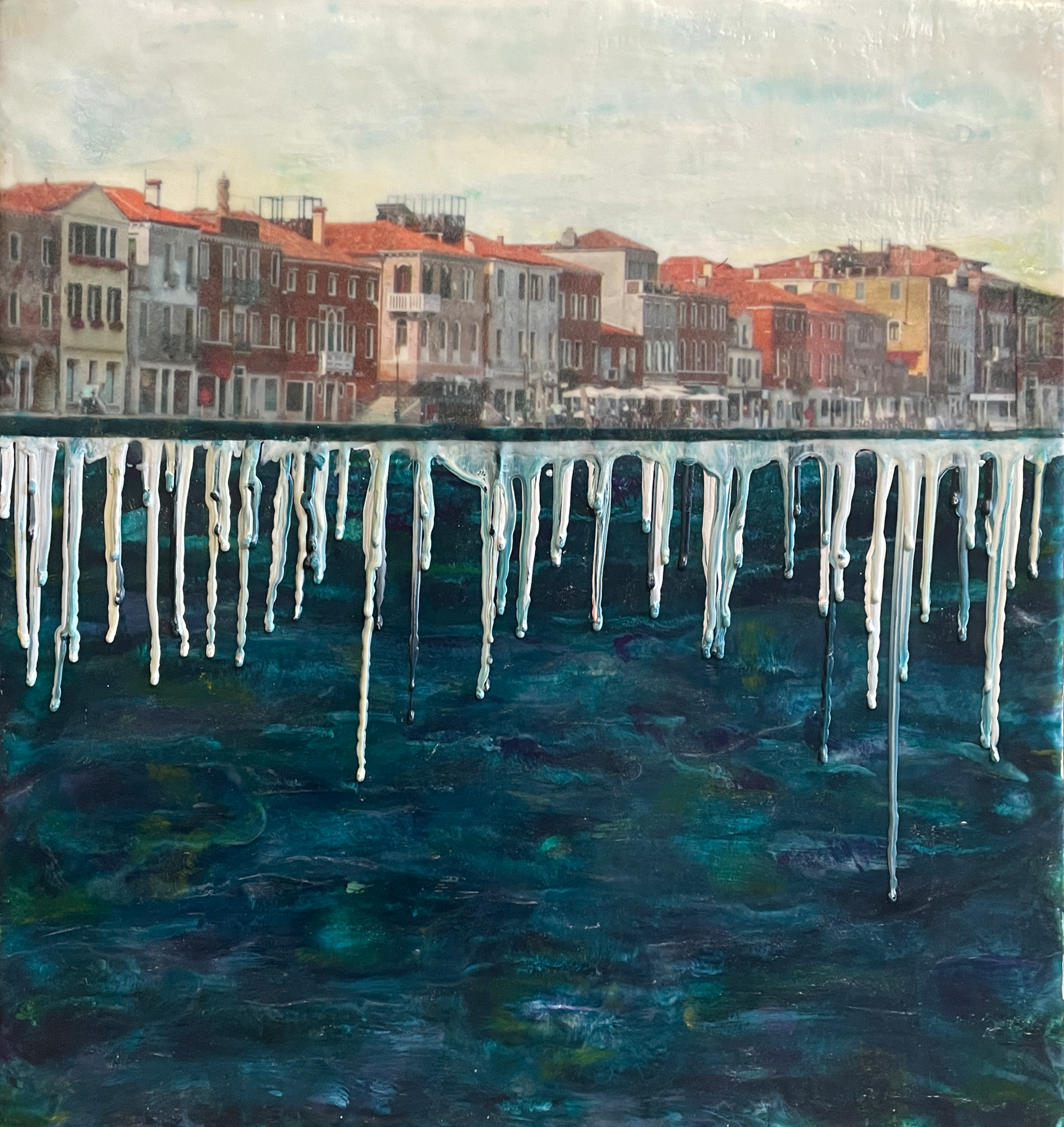 I love to travel. While in Italy, my daughter and I visited Venice; a truly magical place. The watery streets of Venice captured my imagination and led to this painting, incorporating a photograph graph taken on that trip.